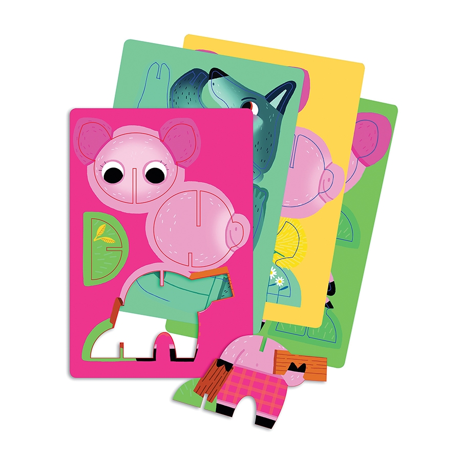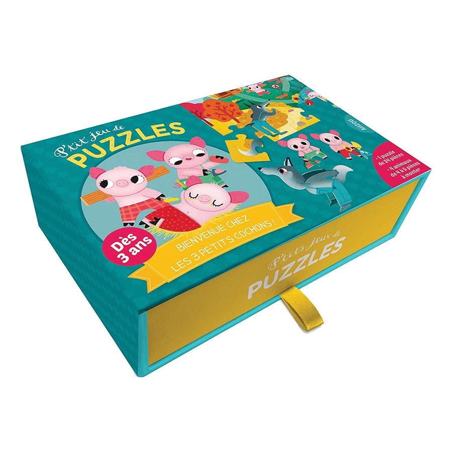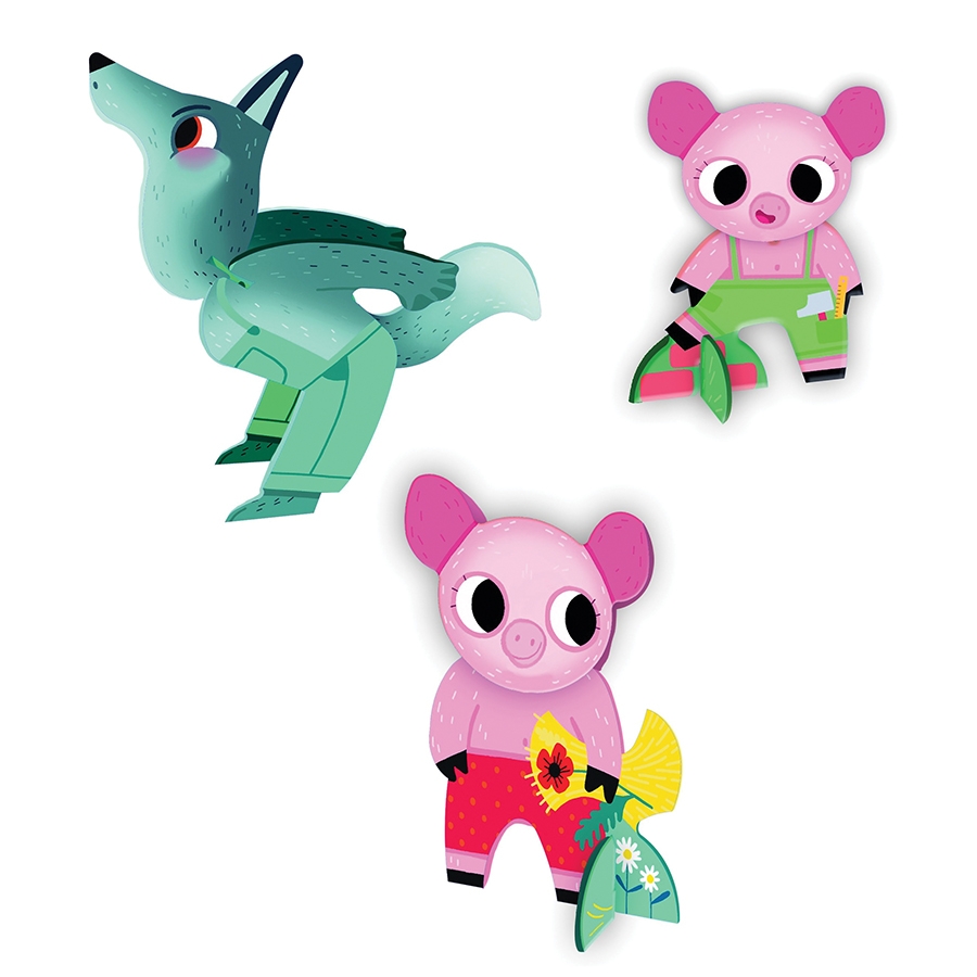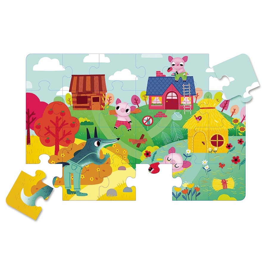 Ανακαλύψτε τα τρία μικρά γουρουνάκια και τον μεγάλο κακό λύκο με αυτό το μικρό παιχνίδι παζλ. Φτιάξε ένα παζλ με 24 κομμάτια και 4 τρισδιάστατες φιγούρες, αποτελούμενες από 5 κομμάτια η καθεμία, με τους ήρωες του παραμυθιού ώστε να ζωντανέψτε το παραμύθι!