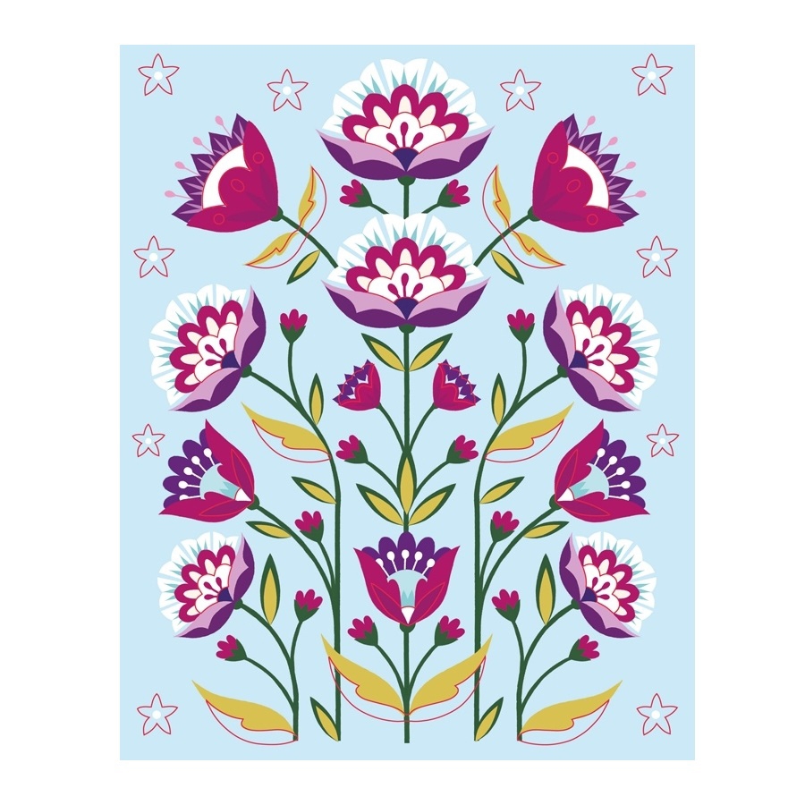 Πρόσθεσε ένα άγγιγμα μαγείας, βάζοντας γκλίτερ, σ'αυτές τις, υπέροχα εικονογραφημένες εικόνες, με πολύχρωμα λουλούδια και ζωάκια. Ο τρόπος είναι απλός. Ξεκόλλησε ένα ένα τα σημεία όπου υπάρχει κόλλα και μετά πασπάλισε τα, προσεκτικά, με το αντίστοιχο χρώμα γκλίτερ για να ολοκληρώσεις το έργο σου.