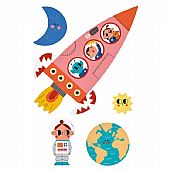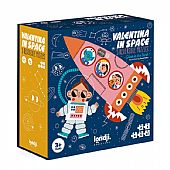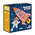 Ταξιδέψτε με τη Βαλεντίνα και τους φίλους της στο διάστημα και ανακαλύψτε μερικά από τα θαύματα του ηλιακού μας συστήματος: τη γη, το φεγγάρι και τα αστέρια! 5 παζλ διπλής όψης με 2, 3, 4, 5 και 10 κομμάτια αντίστοιχα. Η απόλυτη έκπληξη όμως είναι ότι μόλις το συναρμολογήσετε φωσφορίζει στο σκοτάδι!