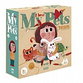 Το σετ παζλ Αγαπώ τα κατοικίδιά μου περιλαμβάνει 7 αναστρέψιμα παζλ με ένα μικρό κορίτσι και τα κατοικίδιά της. Κάθε μικρό παζλ αποτελείται από 3 κομμάτια. Η μία πλευρά απεικονίζει το κατοικίδιο και η άλλη μια μικρή ιστορία. Τα παιδιά θα τα λατρέψουν!