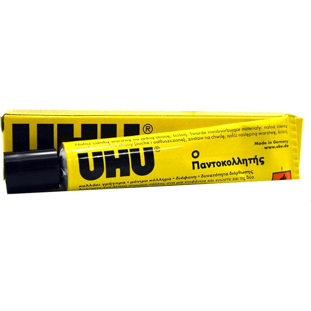 UHU Κόλλα γενικής χρήσης σωληνάριο ,υγρή , διάφανη ,στεγνώνει γρήγορα ,προσωρινά επανατοποθετείται και δεν τσαλακώνει το χαρτί!