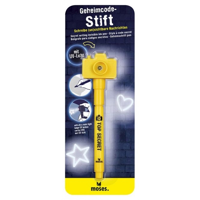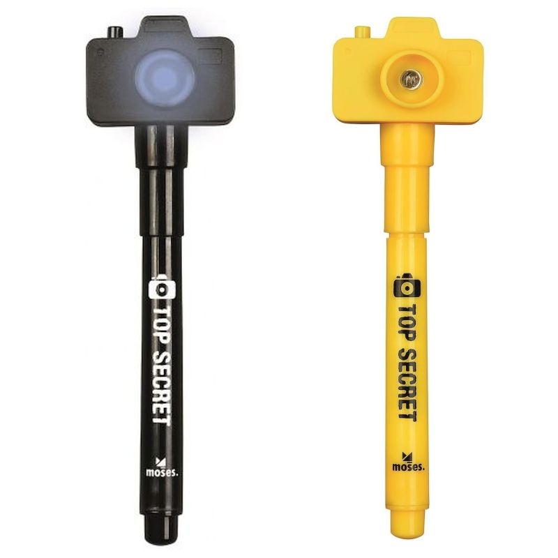 Ένα μαγικό στυλό από την Moses! Το στυλό γράφει με αόρατο μελάνι το οποίο εάν το φωτίσετε με τον ειδικό φακό-καπάκι του, τότε το μελάνι εμφανίζετε!