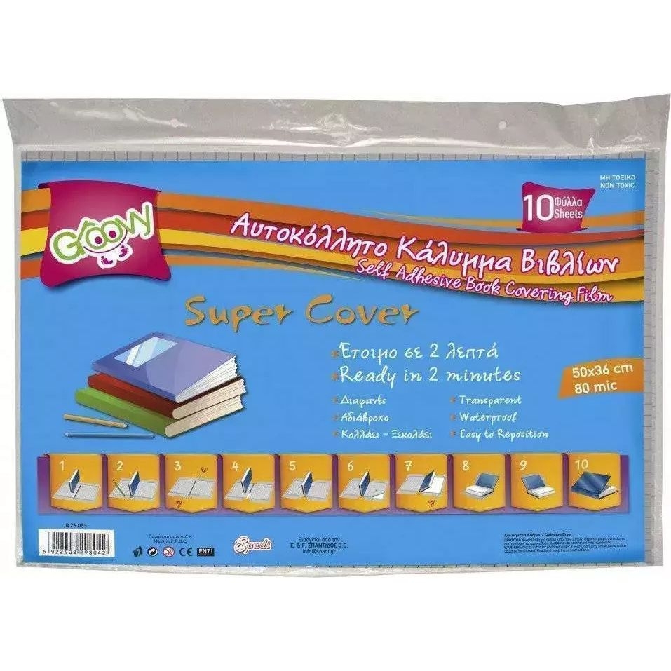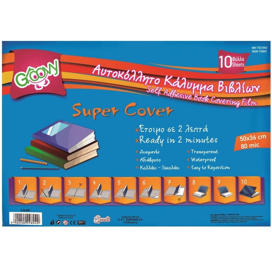 Αυτοκόλλητο κάλυμμα βιβλίων σε φύλλα της Groovy μήκους 50x36 εκ. Η συσκευασία περιλαμβάνει 10 φύλλα.
