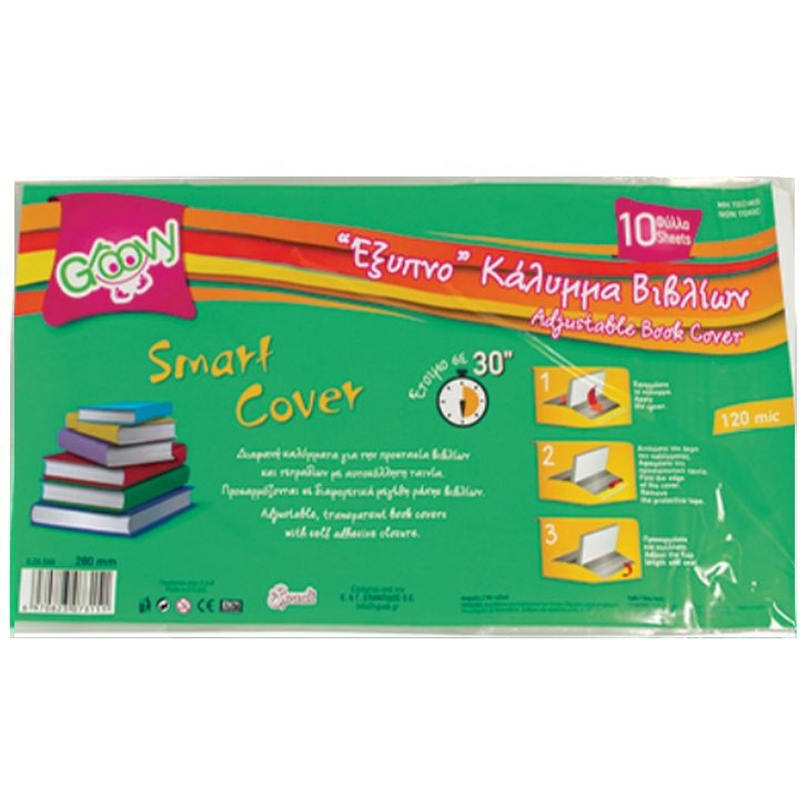 GROOVY Έξυπνο κάλυμμα βιβλίων / 10 Φύλλα, 50x30-120mic.