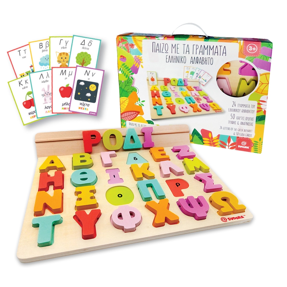 Παίζω με τα γράμματα - Ελληνικό ξύλινο αλφάβητο & 50 Κάρτες - Svoora