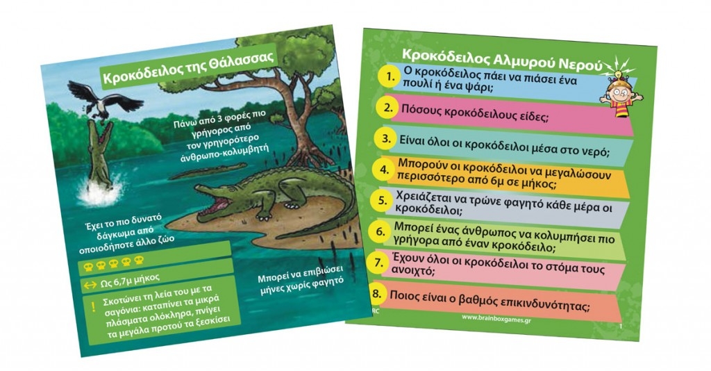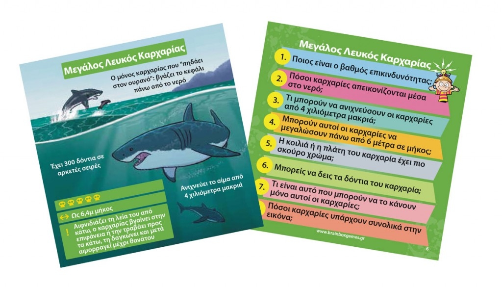 Πρόσεχε! Μερικά από τα πιο επικίνδυνα πλάσματα στον πλανήτη βρίσκονται μέσα σε αυτό το BrainBox, περιμένοντας να δουν αν οι παρατηρητικές και μνημονικές σου ικανότητες είναι αρκετά καλές για να σε κρατήσουν ασφαλή! Από τον γκρίζο λύκο ως τον μεγάλο λευκό καρχαρία, από τον χρυσό δηλητηριώδη βάτραχο ως την πολική αρκούδα, από τη βασιλική κόμπρα ως την όρκα, αυτό το φανταστικό BrainBox περιέχει τα πιο άγρια και τα πιο τρομακτικά ζώα του ζωικού βασιλείου. Τολμάς να ανοίξεις το κουτί; Μάζεψε τις περισσότερες κάρτες μέσα σε 10 λεπτά.