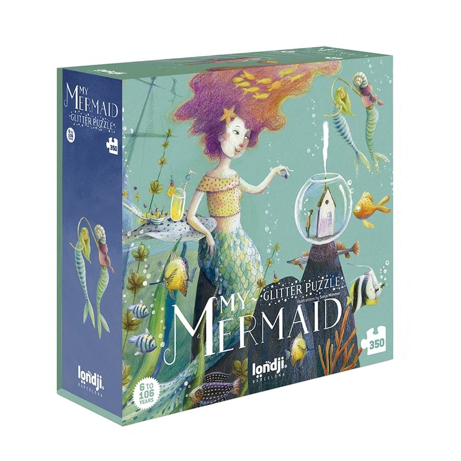 Καλωσήρθατε στο υποθαλάσσιο βασίλειο της γοργόνας! Βουτήξτε στο βυθό της θάλασσας και ανακαλύψτε πόσο διασκεδαστικό είναι να περάσετε χρόνο παρέα με αυτά τα πανέμορφα πλάσματα. Ένα παζλ 350 κομματιών με γκλίτερ, με το οποίο όλοι και όλες μπορείτε να αφήσετε τη φαντασία σας να ταξιδέψει χάρη στο πανέμορφο σχέδιο της Sonja Wimmer.