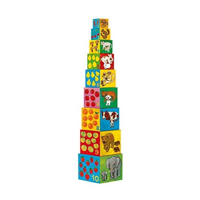 Οι 10 κύβοι στοίβαξης της εταιρείας Djeco είναι ένα από τα καλύτερα παιχνίδια για να απασχοληθούν τα παιδιά! Είναι ασφαλείς, ανθεκτικοί και κατασκευασμένοι από χοντρό χαρτόνι. Τα παιδιά μπορούν να συνθέσουν, να ταξινομήσουν και να γκρεμίσουν τον πύργο που έφτιαξαν. Έχουν τόσες δυνατότητες και πολλαπλά οφέλη! Συγκεκριμένα, αναπτύσσουν τον συντονισμό ματιών-χεριών καθώς βάζουν τον ένα κύβο πάνω στον άλλον. Αναπτύσσουν πέρα από τις φυσικές τους κινήσεις (ισορροπία, δεξιοτεχνία), τη μνήμη τους και φυσικά στο τέλος έρχεται η επιβράβευση! Το παιχνίδι αυτό αποτελεί πρόκληση για αυτά καθώς πρέπει να σταθούν όρθια για να βάλουν το ένα κύβο πάνω στον άλλον και να φτιάξουν έναν πύργο 86 εκατοστών ή να τα βάλουν όλα μέσα στο κουτί με την σωστή σειρά. Ένας εξαιρετικά διασκεδαστικός τρόπος εισαγωγής στους αριθμούς.