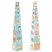 Οι 10 κύβοι στοίβαξης της εταιρείας Djeco είναι ένα από τα καλύτερα παιχνίδια για να απασχοληθούν τα παιδιά! Είναι ασφαλείς, ανθεκτικοί και κατασκευασμένοι από χοντρό χαρτόνι. Τα παιδιά μπορούν να συνθέσουν, να ταξινομήσουν και να γκρεμίσουν τον πύργο που έφτιαξαν. Έχουν τόσες δυνατότητες και πολλαπλά οφέλη! Συγκεκριμένα, αναπτύσσουν τον συντονισμό ματιών-χεριών καθώς βάζουν τον ένα κύβο πάνω στον άλλον. Αναπτύσσουν πέρα από τις φυσικές τους κινήσεις (ισορροπία, δεξιοτεχνία), τη μνήμη τους και φυσικά στο τέλος έρχεται η επιβράβευση! Το παιχνίδι αυτό αποτελεί πρόκληση για αυτά καθώς πρέπει να σταθούν όρθια για να βάλουν το ένα κύβο πάνω στον άλλον και να φτιάξουν έναν πύργο 86 εκατοστών ή να τα βάλουν όλα μέσα στο κουτί με την σωστή σειρά. Ένας εξαιρετικά διασκεδαστικός τρόπος εισαγωγής στους αριθμούς.