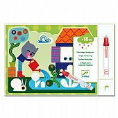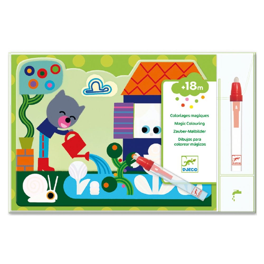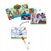 Σετ ζωγραφικής με μαγικά χρώματα! Αποτελείται από τέσσερις καρτέλες με ζωάκια κρυμμένα στον κήπο! Τα παιδιά γεμίζουν τον μαρκαδόρο με νερό κι έπειτα ξεκινούν να χρωματίζουν για να αποκαλύψουν κάθε είδους εκπλήξεις. Όταν ο μαρκαδόρος στεγνώσει τον γεμίζουμε ξανά και ακολουθούμε την ίδια διαδικασία.