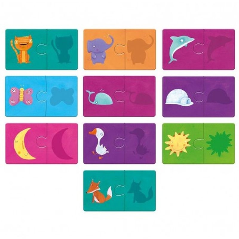 Μια σειρά παιχνιδιών ειδικά φτιαγμένη για την ανάπτυξη ικανοτήτων λογικής και ταιριάσματος. Μέσα θα βρείτε δέκα μικρά παζλάκια με λεπτομερείς εικόνες, φτιαγμένα από δύο κομμάτια το καθένα. ¨Ζευγαρώστε¨ την εικόνα με το περίγραμμα της.