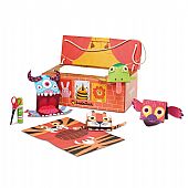 Περιλαμβάνει: χάρτινο κρεμαστό θέατρο, 18 μαριονέτες που θα κατασκευάσετε, σελίδες με εικόνες που θα κόψετε για να ολοκληρώσετε τους χαρακτήρες, κόλλα, ψαλίδι και οδηγίες.