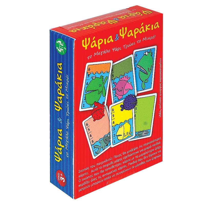 Το μεγάλο ψάρι τρώει το μικρό! Ο παίκτης που έχει στην κάρτα του μεγαλύτερο ψάρι από του αντιπάλου, κερδίζει τις κάρτες!
