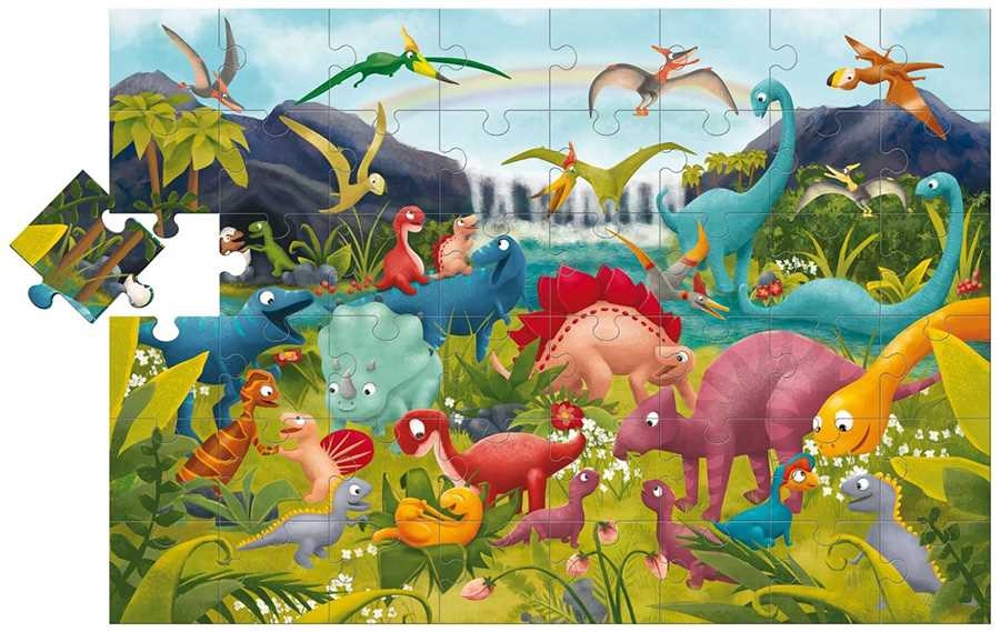 Παζλ, εξαιρετικής ποιότητας, 48 μεγάλων κομματιών. Συνθέστε το γιγαντιαίο αυτό παζλ και ταξιδέψτε στον υπέροχο προϊστορικό κόσμο, γνωρίζοντας μικρούς και μεγάλους δεινοσαύρους όλων των ειδών!