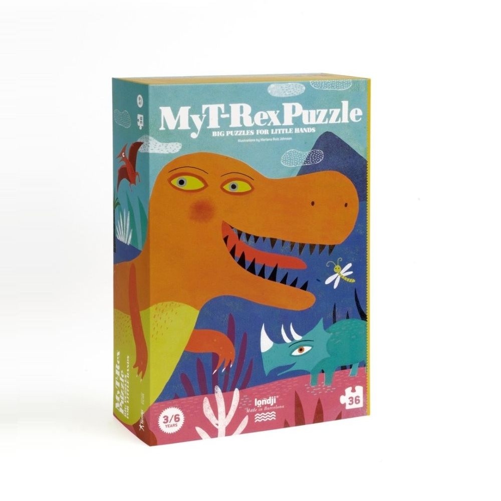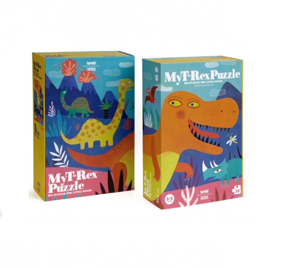 Εξαιρετικής ποιότητας παζλ, με 36 μεγάλα κομμάτια, από ανακυκλωμένο χαρτί και χαρτόνι. Ταξίδεψε στα προιστορικά χρόνια παρέα με έναν τυραννόσαυρο, έναν τρικεράτοπα, ένα διπλόδοκο και έναν πτεροδάκτυλο.