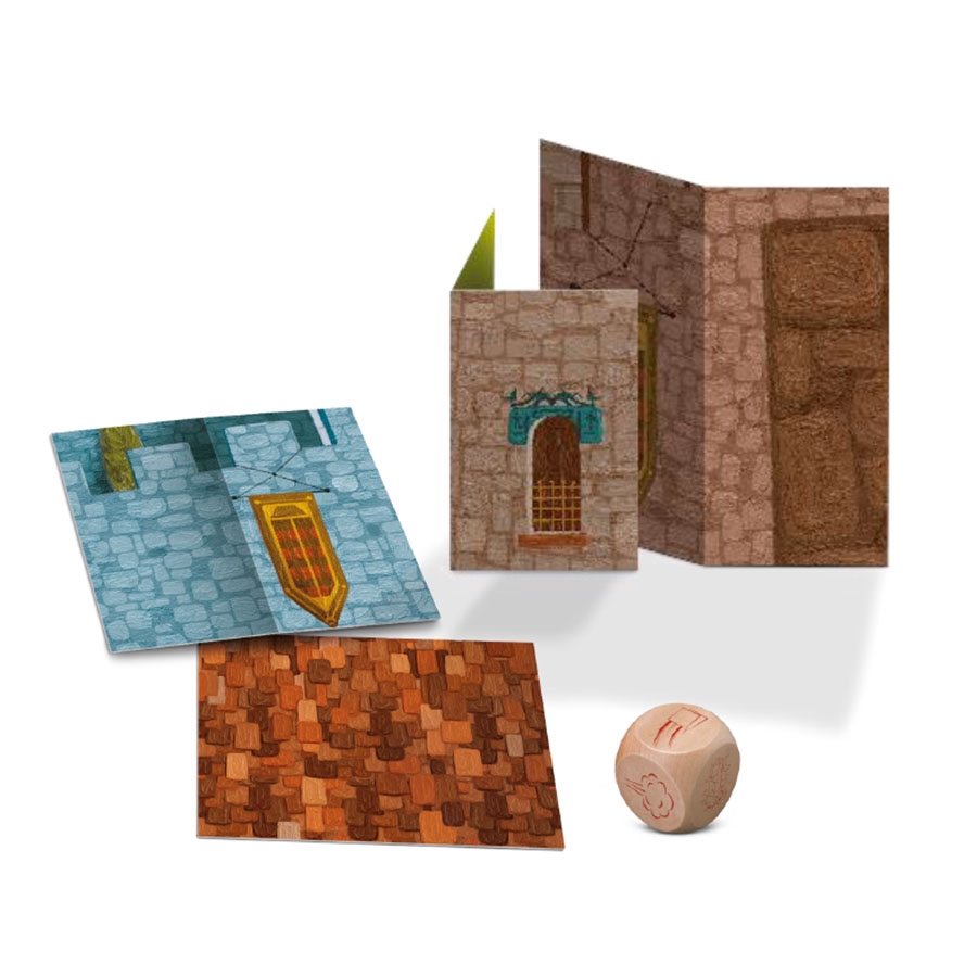 Το επιτραπέζιο περιλαμβάνει: 1 ζάρι, 114 μεγάλες κάρτες για το κάστρο, 12 χάρτινες φιγούρες και οδηγίες παιχνιδιού.