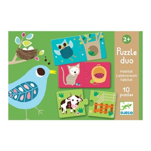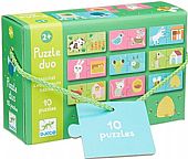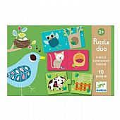 Παζλ από την σειρά Puzzle Duo της εταιρείας Djeco, που αποτελείται από 20 κομμάτια με τα οποία μπορούν να δημιουργηθούν 10 παζλ των 2 κομματιών. Τα παιδιά πρέπει να παρατηρήσουν τα διαθέσιμα κομμάτια και να τα συνδυάσουν. Ένα νοηματικό παζλ που καλλιεργεί τη συγκέντρωση, την υπομονή και την παρατηρητικότητα των παιδιών και αναπτύσσει τον συντονισμό χεριού – ματιού τους.