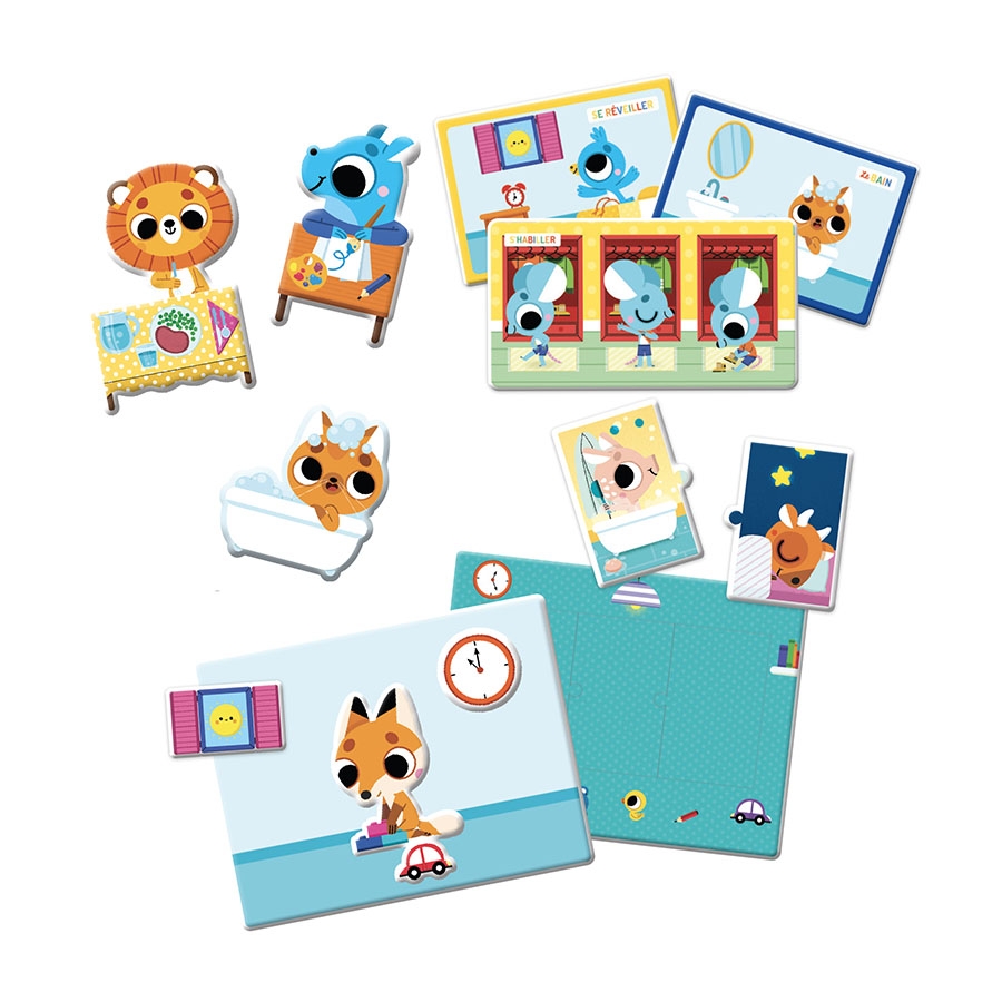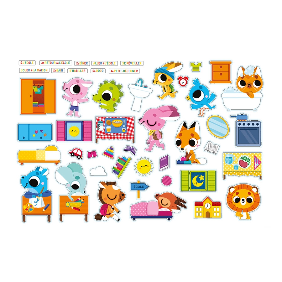 Περιλαμβάνει: 2 μαγνητικές καρτέλες, 50 μαγνήτες που απεικονίζουν στιγμές από την καθημερινότητα ενός παιδιού και κάρτες που θ' αναπτύξουν τη φαντασία του.