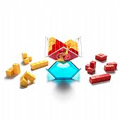 Περιλαμβάνει: 1 θήκη που αλλάζει σχήμα για να δημιουργήσει τη βάση του επιτραπέζιου, 8 κόκκινα και 8 κίτρινα τρισδιάστατα κομμάτια, οδηγίες παιχνιδιού και 1 βιβλιαράκι με 80 προκλήσεις και τις λύσεις του.