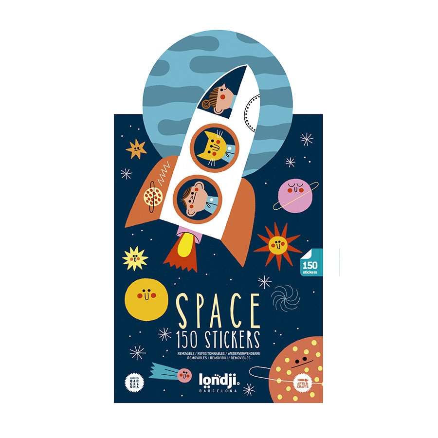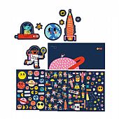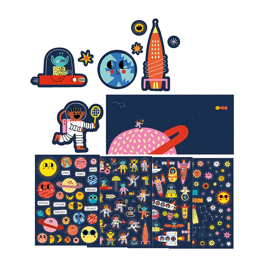 150 επανατοποθετούμενα αυτοκόλλητα με θέμα το διάστημα και 2 κάρτες-σκηνικά για ατελείωτες ώρες παιχνιδιού!