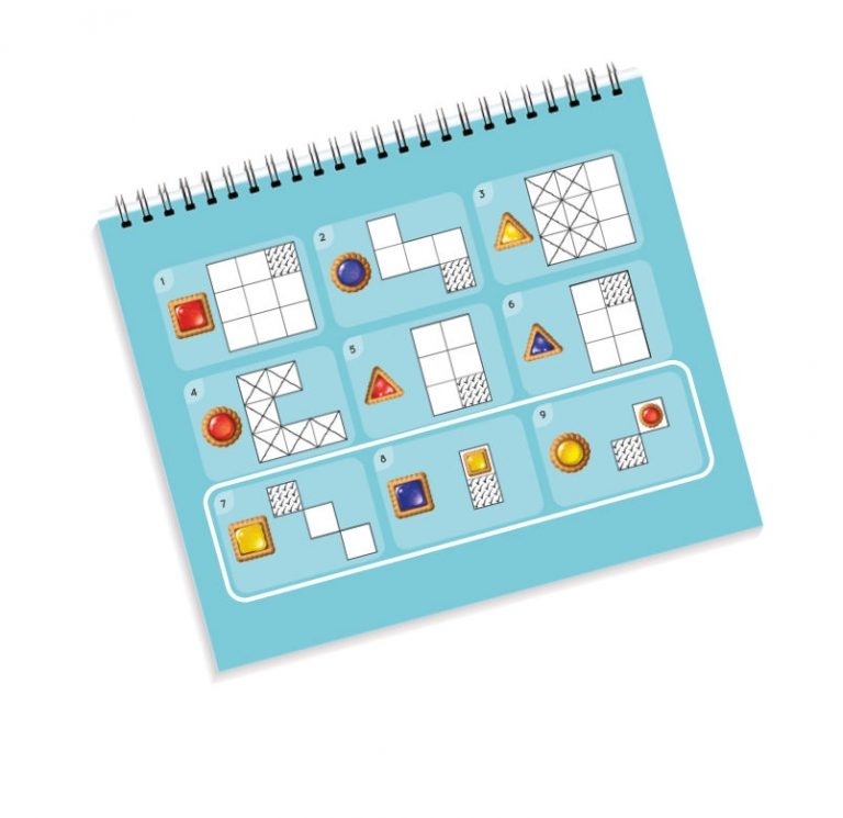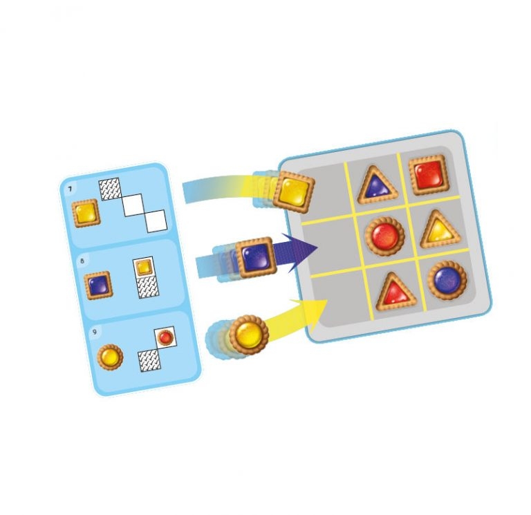 Περιλαμβάνει: 9 πλαστικά μπισκότα, 1 ταμπλό, 1 βιβλίο με 64 διαφορετικά puzzle και οδηγίες.
