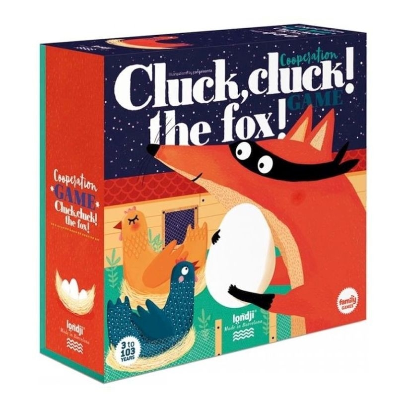 Το Cluck, Cluck! The Fox! είναι ένα παιχνίδι για όλη την οικογένεια. Ένα συνεργατικό παιχνίδι που βασίζεται στην προσπάθεια να σώσετε τις κότες και τα αυγά πριν εμφανιστεί η αλεπού!