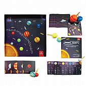 Περιλαμβάνει: 9 ξύλινες σβουρίτσες, 8 πλανήτες και ένα διαστημόπλοιο, 8 Κάρτες Πληροφοριών, 24 Κάρτες Αποστολών.