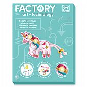 Με τη σειρά κατασκευής Factory η εταιρία Djeco εισάγει το παιδί στο ηλεκτρονικό κύκλωμα και την τεχνολογία. Δημιουργήστε κύκλωμα σε ένα κόσμημα χρησιμοποιώντας ένα αγώγιμο πολύ λεπτό καλώδιο. Μετά απλά προσθέστε την μπαταρία και το λαμπάκι LED. Τα πόδια από τη φιγούρα στο κόσμημα λειτουργούν σαν διακόπτης ο οποίος λειτουργεί όταν το παιδί το φοράει και κινείται.