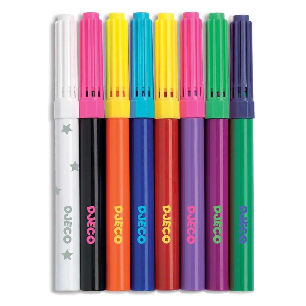 Σετ ζωγραφικής με μαγικούς μαρκαδόρους (εφέ αλλαγής χρώματος) από την γαλλική εταιρεία Djeco. Ιδανική κατασκευή με μαρκαδόρους για παιδιά μικρής ηλικίας. Ζωγραφίστε ελεύθερα τα σχέδια και ντύστε τα κορίτσια. Στην συνέχεια κόψτε το περίγραμμα! Η κατασκευή σας είναι έτοιμη και χωρίς ατέλειες. Μπορείτε να τα χρησιμοποιήσετε ως διακοσμητικά για το κολλάζ σας.