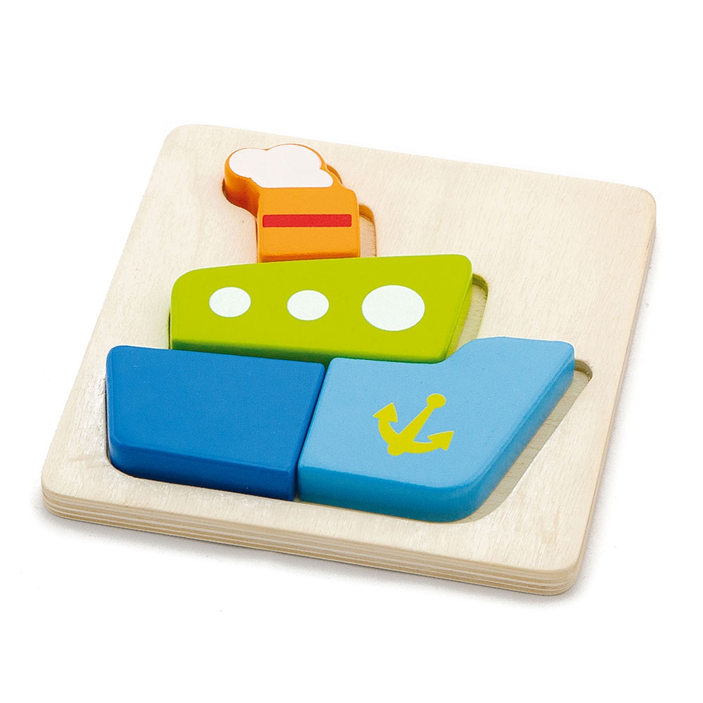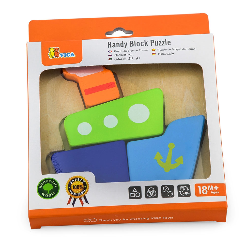 Το καραβάκι είναι έτοιμο να σαλπάρει! Μπορείτε να συναρμολογήσετε τα κομμάτια του; Παζλ 4 κομματιών από εξαιρετικής ποιότητας ξύλο και χρώματα μη τοξικά με βάση το νερό της εταιρείας Viga. Τα έντονα χρώματα προσελκύουν το ενδιαφέρον των παιδιών, ενώ τα κομμάτια είναι απολύτως ασφαλή, καθώς δεν διαθέτουν αιχμηρές άκρες και γωνίες. Το παζλ συμβάλλει στην εκμάθηση των χρωμάτων και των σχημάτων, στη βελτίωση του συντονισμού χεριού-ματιού και στην ανάπτυξη της λεπτής κινητικότητας του παιδιού.