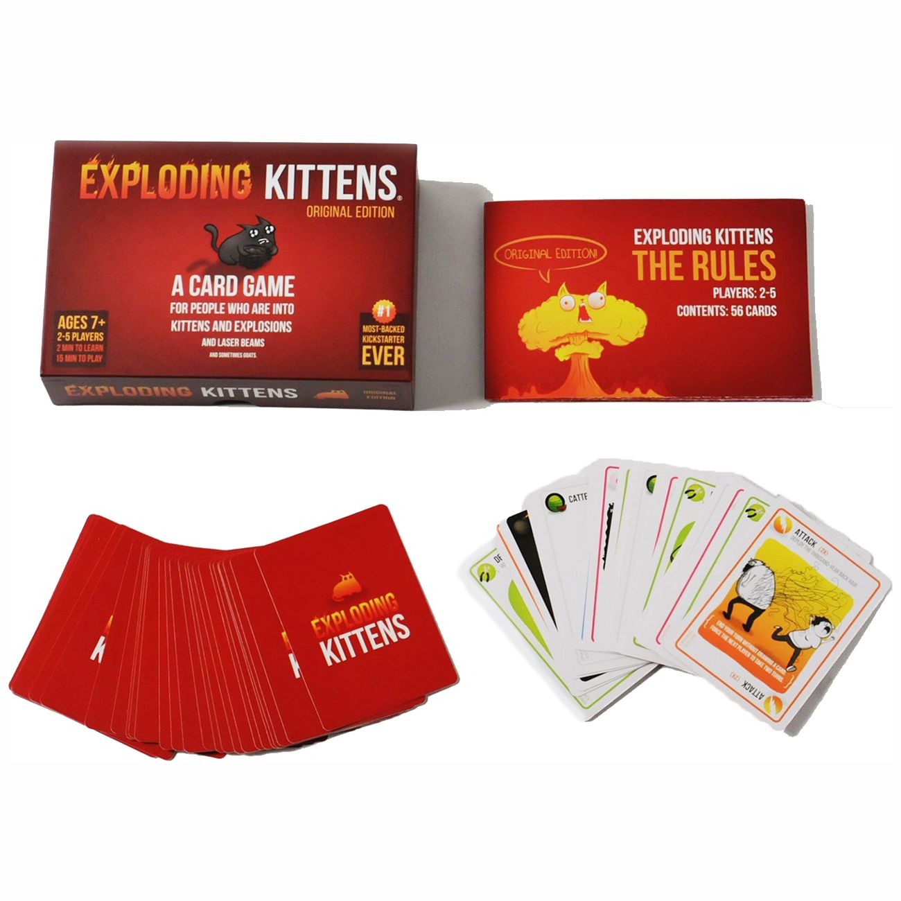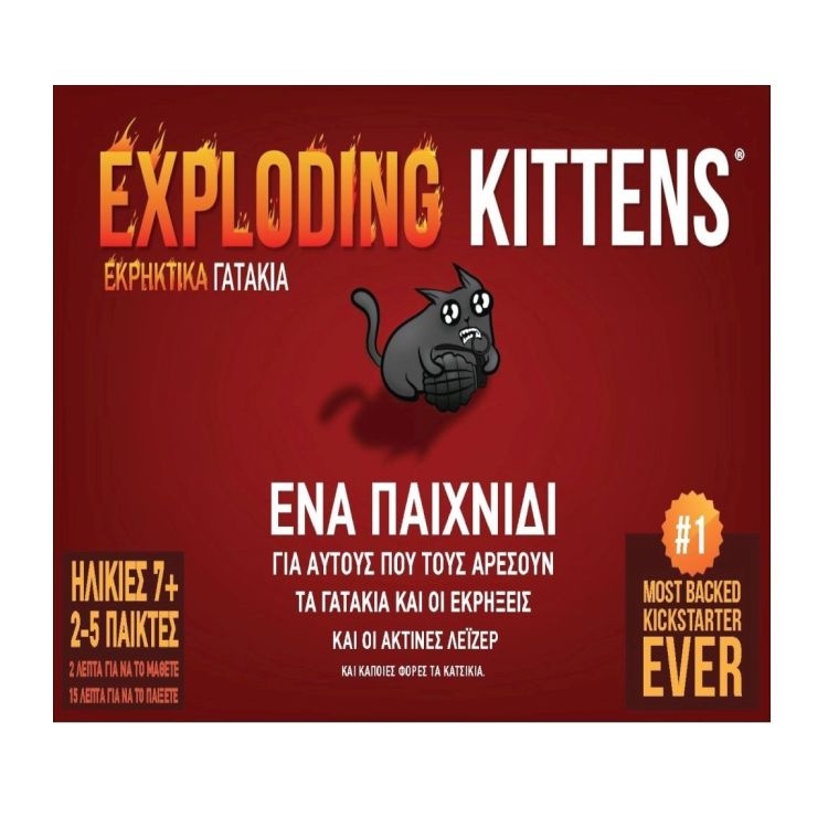 Ετοιμαστείτε για μια γατένια, στρατηγική παραλλαγή της Ρώσικης Ρουλέτας. Οι παίκτες τραβάνε κάρτες προσπαθώντας να μετακινήσουν ή να αποφύγουν Εκρηκτικά Γατάκια. Αν κάποιος τραβήξει ένα Εκρηκτικό Γατάκι, ανατινάζεται και βγαίνει από το παιχνίδι - εκτός και αν ο παίκτης αυτός έχει μια Κάρτα Προστασίας, με την οποία μπορεί να εξουδετερώσει το Γατάκι χρησιμοποιώντας πράγματα όπως δείκτες λέιζερ και σάντουιτς με λιχουδιές!