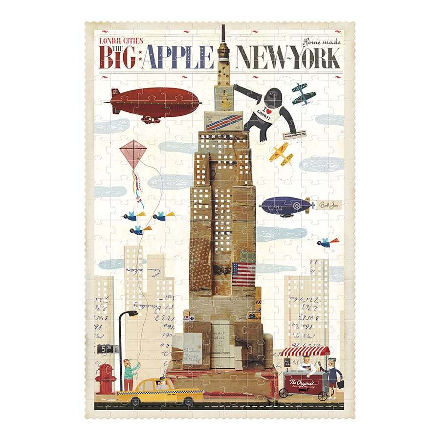 Η Londji θα σας ταξιδέψει με αυτό της το παζλ στη Νέα Υόρκη, και στον ιστορικό και επιβλητικό Empire State Building! Πρόκειται για ένα από τα ψηλότερα κτίρια στον κόσμο με ύψος 381 μέτρα και 102 ορόφους. Φυσικά, η εικονογράφος σχεδίασε το Empire State Building με το δικό της τρόπο: στο κτίριο σκαρφαλώνει ο Κινγκ Κονγκ, ο οποίος παρατηρεί τα όσα συμβαίνουν στην πόλη. 'Ενας πλανώδιος πωλητής πουλάει χοτ-ντογκ, δύο ζέπελιν πετούν στον αέρα, κι ένα ταξί περιμένει να βρει πελάτες. Ένας πραγματικά ενδιαφέρων τρόπος απεικόνισης της πόλης! Η κατασκευή παζλ ενισχύει τη λογική σκέψη, τη φαντασία, την αίσθηση του χώρου και πολλά άλλα. Περιλαμβάνονται 200 κομμάτια. Σχέδιο: Txell Darn.