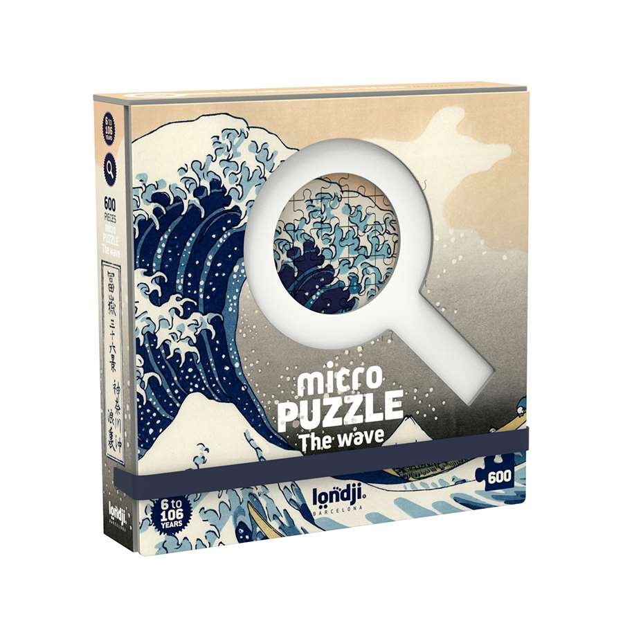 Διαθέτοντας εκπληκτικά σκίτσα, τα micropuzzle με 600 κομμάτια της Londji αποτελούν μια αληθινή πρόκληση ακόμα και για τον πιο δυνατό λύτη παζλ! Ανακαλύψτε την πανέμορφη εικόνα του Μεγάλου Κύματος έξω από την Καναγκάουα, φιλοτεχνημένης από τον Κατσουσίκα Χοκουσάι στις αρχές του 19ου αιώνα.