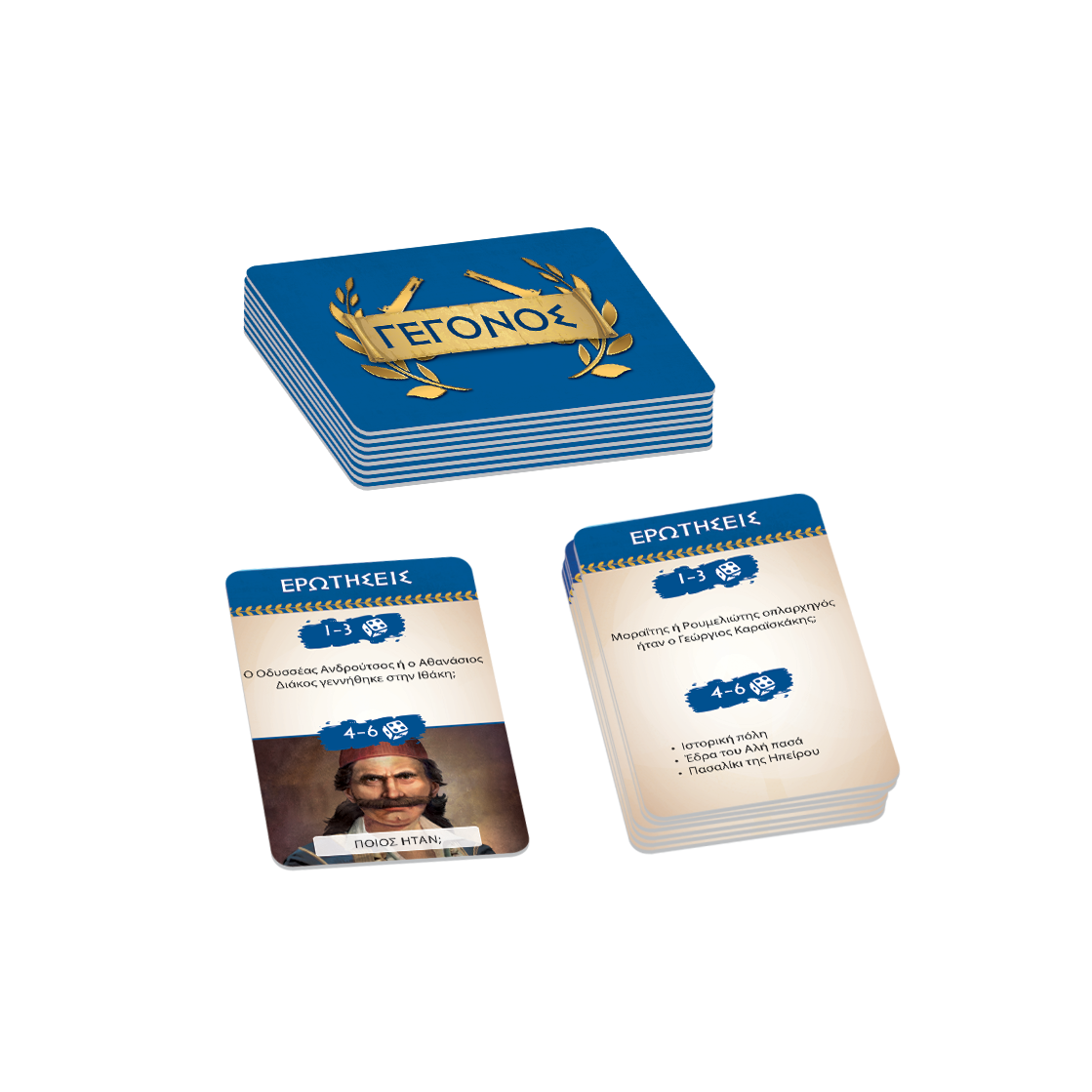 Περιλαμβάνει: 1 εκπαιδευτικό βιβλίο 40 σελίδων, 70 κάρτες ερωτήσεων, 30 κάρτες Γεγονότων, 6 πιόνια, 1 ταμπλό και οδηγίες.Τύπος παιχνιδιού: Οικογενειακό, γνώσεων, παρατηρητικότητας, λύσης γρίφων.