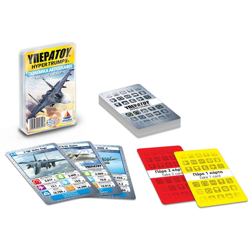 Ετοιμάσου για ένα ταξίδι στο παρελθόν, με τις καινούργιες τράπουλες «ΥΠΕΡΑΤΟΥ™». Διάλεξε χαρακτηριστικό, σύγκρινε το με του αντιπάλου, και κέρδισε την κάρτα! Χρησιμοποίησε έξυπνα την κάρτα ΥΠΕΡΑΤΟΥ και βγες μπροστά! Παίξε και μάθε τα πάντα για τα πολεμικά αεροσκάφη!