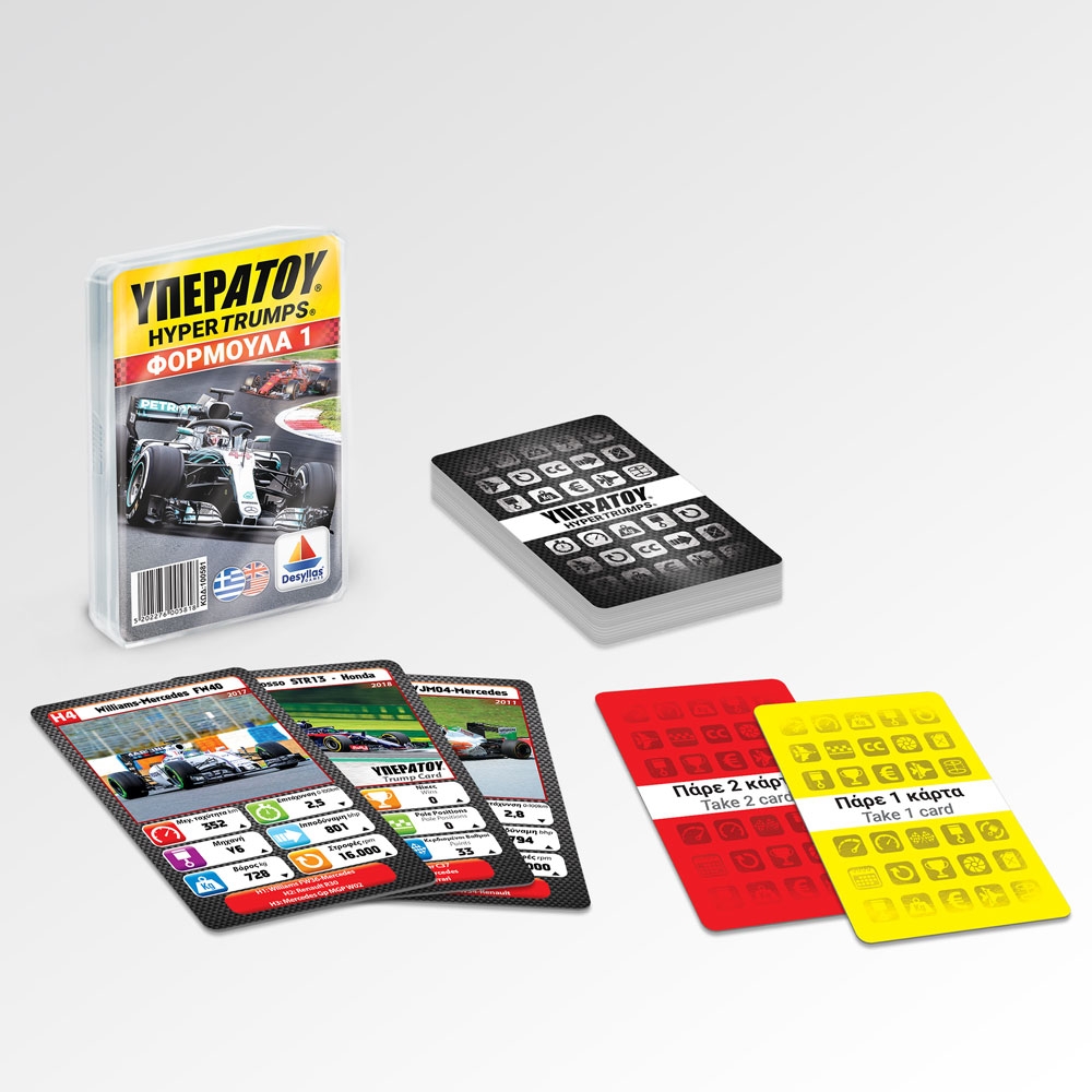 Ετοιμάσου για ένα ταξίδι στο παρελθόν, με τις καινούργιες τράπουλες «ΥΠΕΡΑΤΟΥ™». Διάλεξε χαρακτηριστικό, σύγκρινε το με του αντιπάλου, και κέρδισε την κάρτα! Χρησιμοποίησε έξυπνα την κάρτα ΥΠΕΡΑΤΟΥ και βγες μπροστά! Παίξε και μάθε τα πάντα για τα αυτοκίνητα της Φόρμουλα 1!
