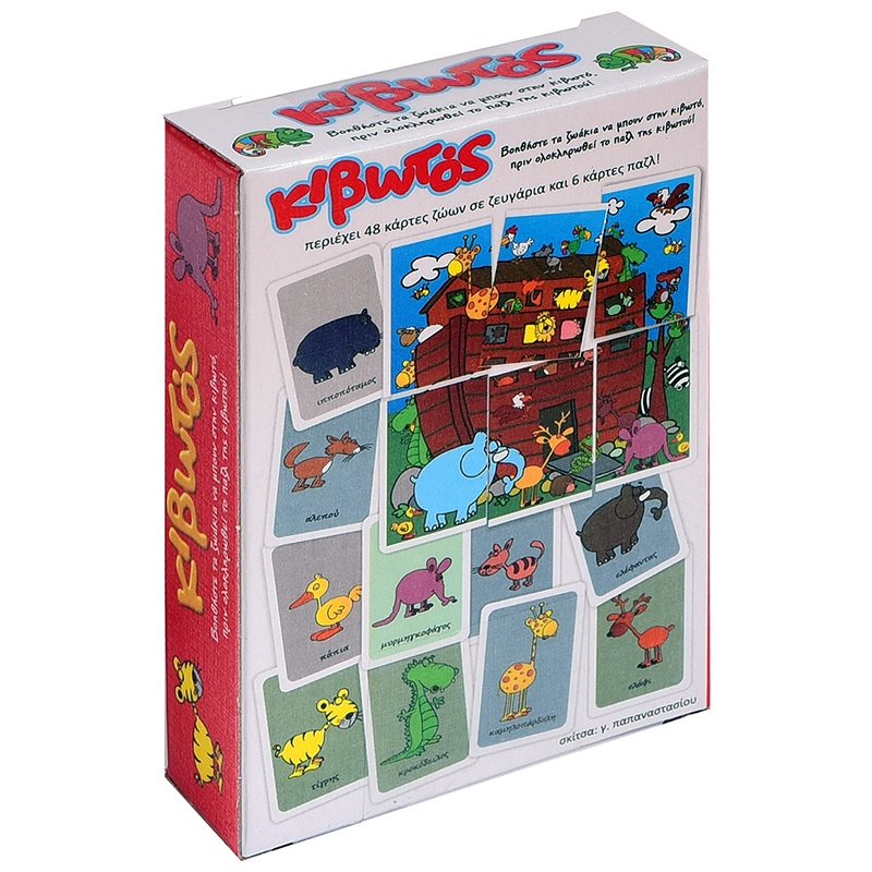 Περιλαμβάνονται: 48 κάρτες , 6 κάρτες κιβωτού και η οδηγίες παιχνιδιού.