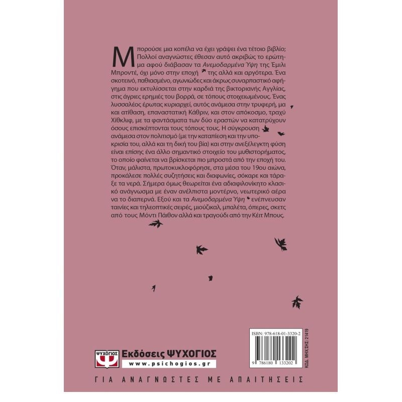 Μπορούσε μια κοπέλα να έχει γράψει ένα τέτοιο βιβλίο; Πολλοί αναγνώστες έθεσαν αυτό ακριβώς το ερώτημα αφού διάβασαν τα Ανεμοδαρμένα Ύψη της Έμιλι Μπροντέ, όχι μόνο στην εποχή της αλλά και αργότερα. Ένα σκοτεινό, παθιασμένο, αγωνιώδες και άκρως συναρπαστικό αφήγημα που εκτυλίσσεται στην καρδιά της βικτοριανής Αγγλίας, στις άγριες ερημιές του βορρά, σε τόπους στοιχειωμένους. Ένας λυσσαλέος έρωτας κυριαρχεί, αυτός ανάμεσα στην τρυφερή, μα και ατίθαση, επαναστατική Κάθριν, και στον απόκοσμο, τραχύ Χίθκλιφ, με τα φαντάσματα των δύο εραστών να κατατρύχουν όσους επισκέπτονται τους τόπους τους. Η σύγκρουση ανάμεσα στον πολιτισμό (με την καταπίεση και την υποκρισία του, αλλά και τη δική του βία) και στην ανεξέλεγκτη φύση είναι επίσης ένα άλλο σημαντικό στοιχείο του μυθιστορήματος, το οποίο φαίνεται να βρίσκεται πιο μπροστά από την εποχή του. Όταν, μάλιστα, πρωτοκυκλοφόρησε, στα μέσα του 19ου αιώνα, προκάλεσε πολλές συζητήσεις και διαφωνίες, σόκαρε και τάραξε τα νερά. Σήμερα όμως θεωρείται ένα αδιαφιλονίκητο κλασικό ανάγνωσμα με έναν ανέλπιστα μοντέρνο, νεωτερικό αέρα να το διαπερνά. Εξ ου και τα Ανεμοδαρμένα Ύψη ενέπνευσαν ταινίες και τηλεοπτικές σειρές, μιούζικαλ, μπαλέτα, όπερες, σκετς από τους Μόντι Πάιθον αλλά και τραγούδια από την Κέιτ Μπους.