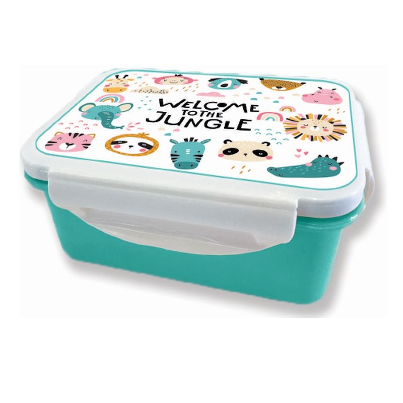 Όμορφο και πρακτικό φαγητοδοχείο της I-drink, με σχέδιο ζωάκια της ζούγκλας στο καπάκι.