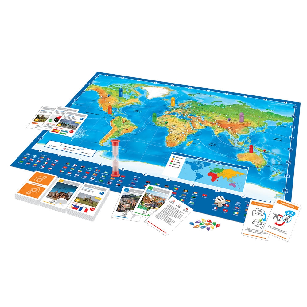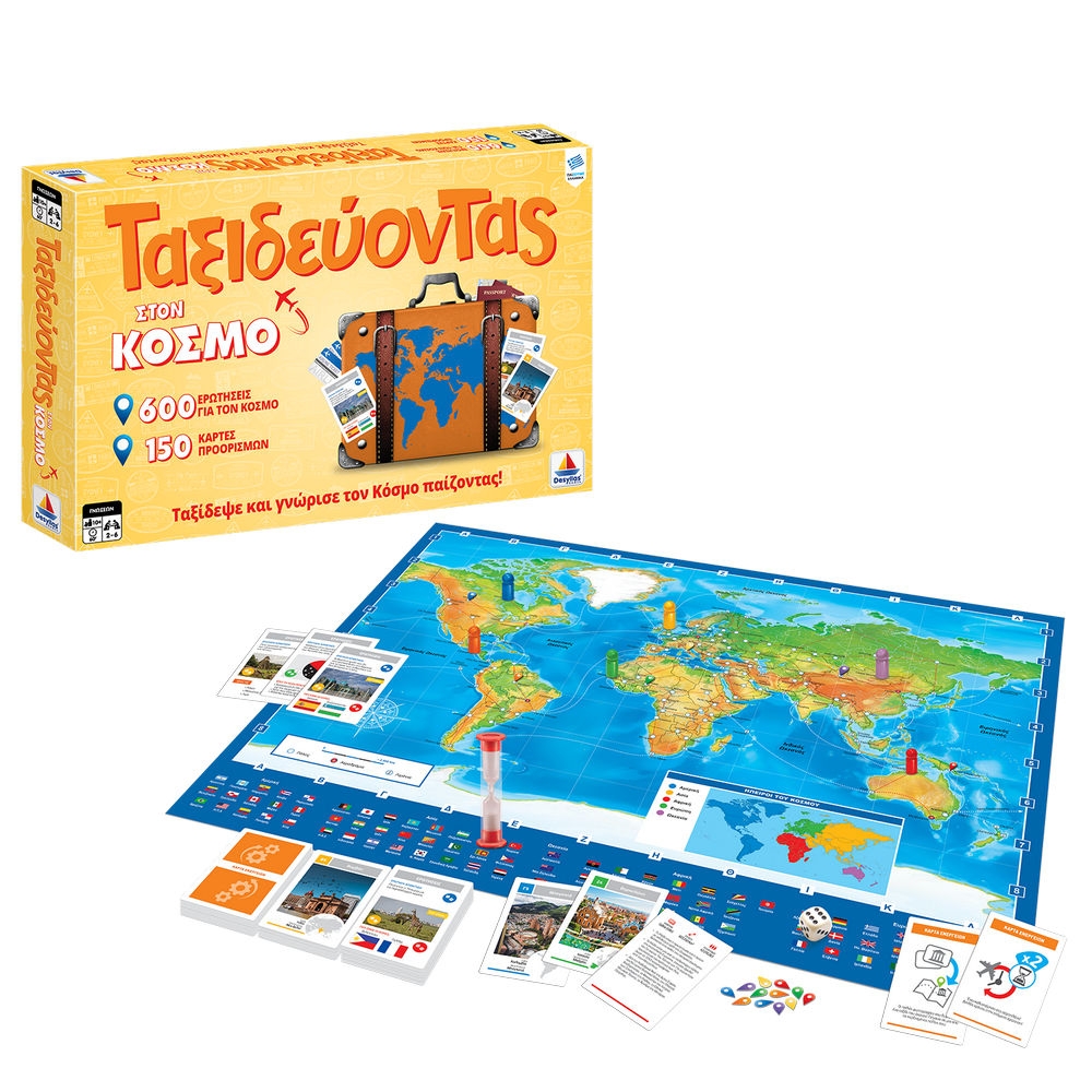 Περιλαμβάνει: 1 ταμπλό, 150 Κάρτες Προορισμών, 200 ερωτήσεις για τον κόσμο, 50 Κάρτες Ενεργειών, 18 Μάρκες, 6 πιόνια, 1 Κλεψύδρα 30”, 1 ζάρι και οδηγίες.Τύπος παιχνιδιού: Οικογενειακό, παρέας, γνώσεων, λύσης γρίφων.
