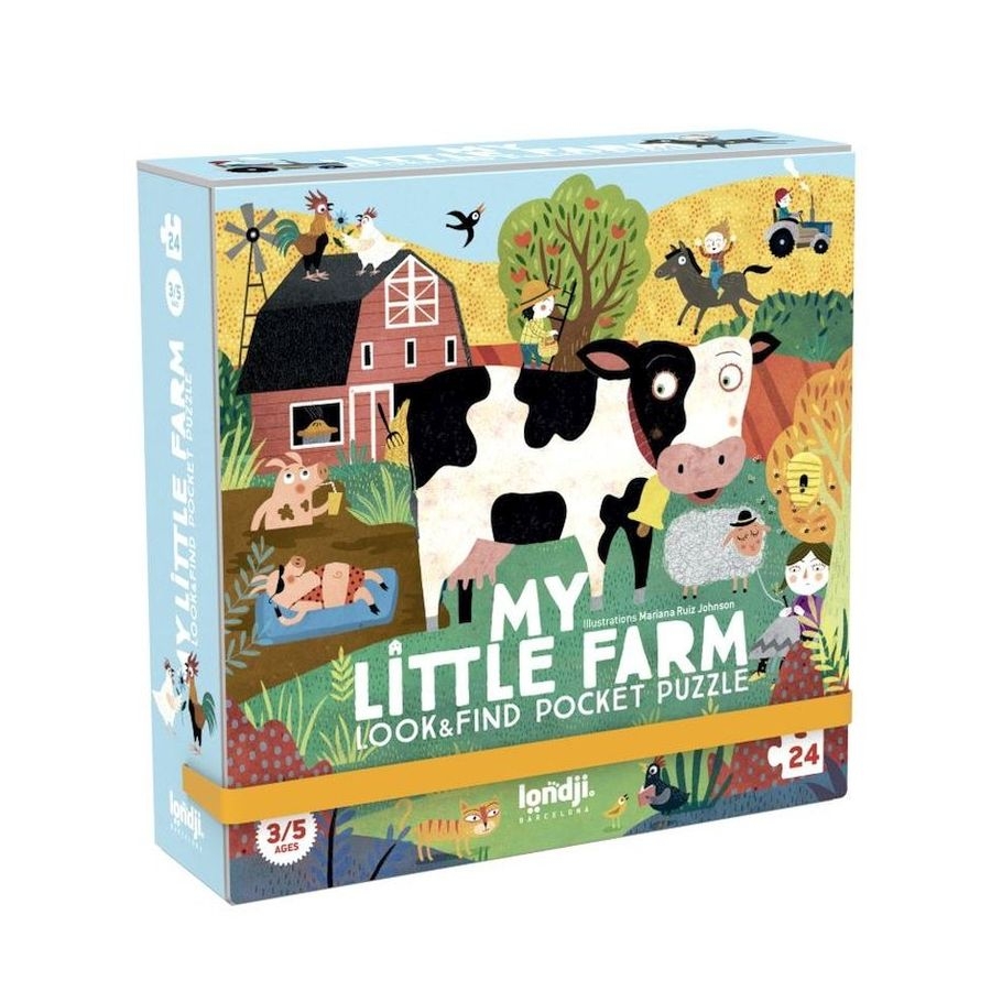 Το υπέροχο παζλ "Η Φάρμα μου" της Londji τώρα και σε εκδοχή τσέπης με 24 κομμάτια. Το καλοκαίρι έφτασε και η διασκέδαση στη φάρμα ξεκινά! Τα γουρουνάκια κυλιούνται στη λάσπη κάτω από τον ζεστό ήλιο, οι κοτούλες έχουν πιάσει κουβέντα και η αγελάδα κάνει νέους φίλους. Φτιάξτε το παζλ και στη συνέχεια παίξτε το παιχνίδι παρατηρητικότητας όπου κι αν βρίσκεστε, καθώς η pocket έκδοση σας επιτρέπει να το έχετε παντού μαζί σας..