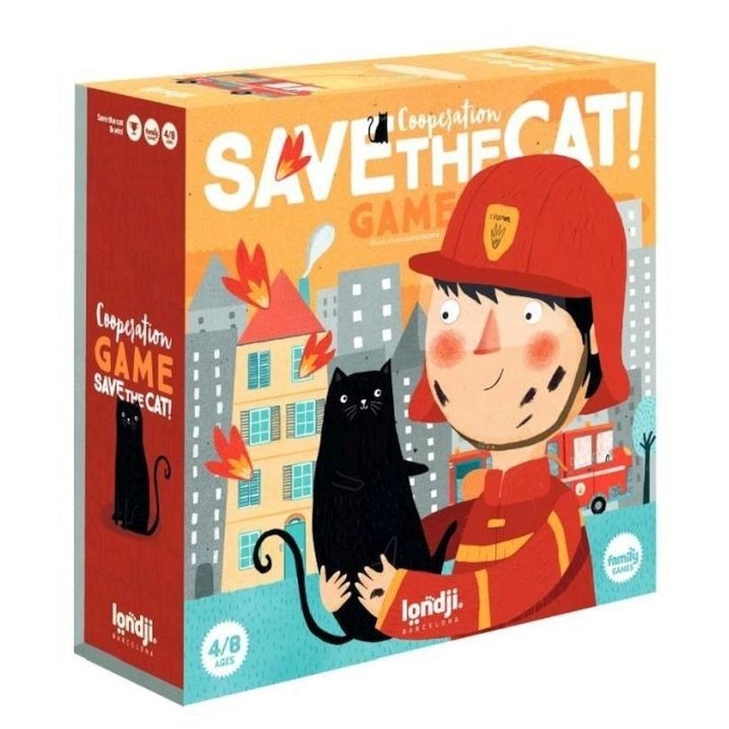 Βοηθήστε τον γενναίο πυροσβέστη να σβήσει όλες τις πυρκαγιές, για να σώσει τη γάτα που είναι παγιδευμένη στη στέγη και να την μεταφέρει στο πυροσβεστικό όχημα. Ένα συνεργατικό επιτραπέζιο παιχνίδι που βοηθάει στην εκμάθηση των αριθμών καθώς και στη λήψη αποφάσεων για την καλύτερη στρατηγική που πρέπει να ακολουθήσουν οι παίκτες.
