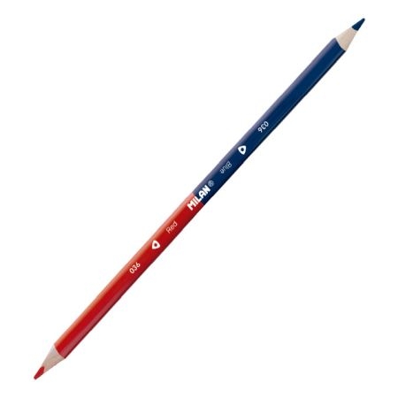 Ένα τριγωνικό μολύβι διπλό κόκκινο και μπλε χρώμα για γραφή της Milan, πολύ εύχρηστο για παιδιά , δεν σπάει η μύτη εύκολα, κατάλληλο για γραφή και σχεδίαση.