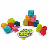 Ένα σετ από 6 μικρές μπάλες αισθήσεων σε έντονα όμορφα χρώματα θα προκαλέσει το μωρό. Είτε με ραβδώσεις, ομαλές ή ανώμαλες, όλες οι μπάλες διεγείρουν την αίσθηση της αφής, της επιδεξιότητας και του συντονισμού στις κινήσεις του μωρού. Οι αισθητήριες μπάλες μπορούν να χρησιμοποιηθούν για να παίξουν πολλά διαφορετικά παιχνίδια.