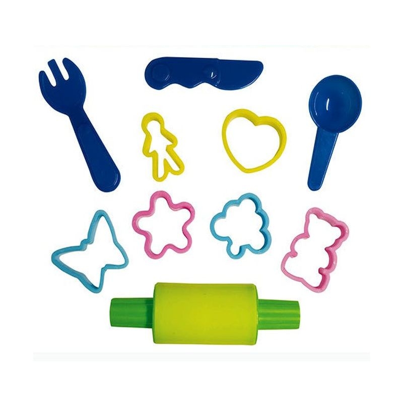 Το σετ περιλαμβάνει: Πλάστη, κουταλάκι, πιρουνάκι, μαχαιράκι και διάφορα καλούπια.