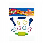 Σετ με εργαλεία της εταιρίας Groovy, για παιχνίδι με πλαστελίνες, πλαστοζυμαράκια, ζυμάρι κ.α.. Η συσκευασία περιέχει 4 εργαλεία και 6 καλούπια σε όμορφα σχέδια και χρώματα. Είναι κατάλληλα για μικρά παιδιά και είναι εύκολα στη χρήση και τον καθαρισμό τους.