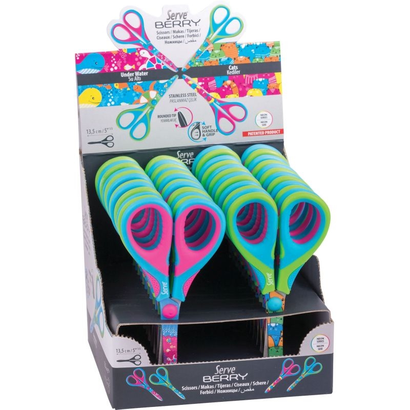 Ψαλίδι σχολικό με σχέδια (13,5cm) - Serve Berry Neon