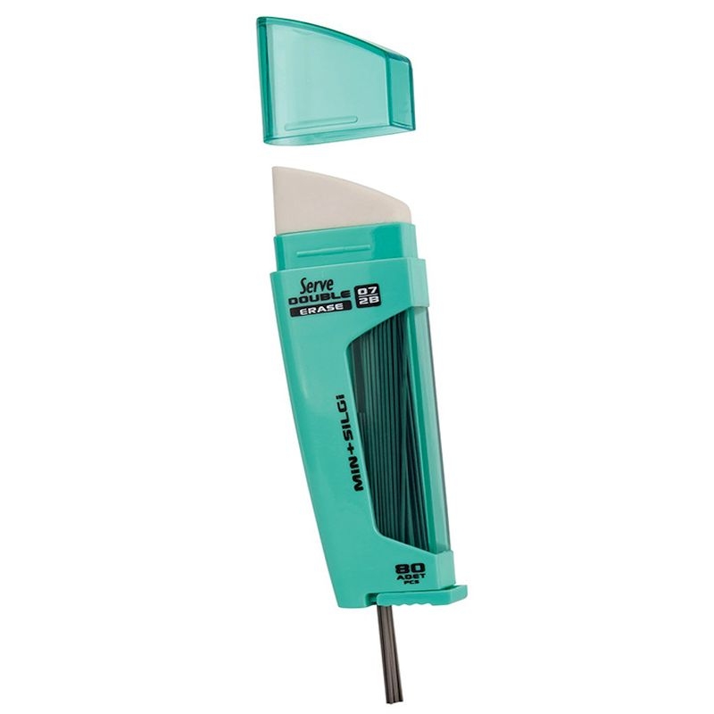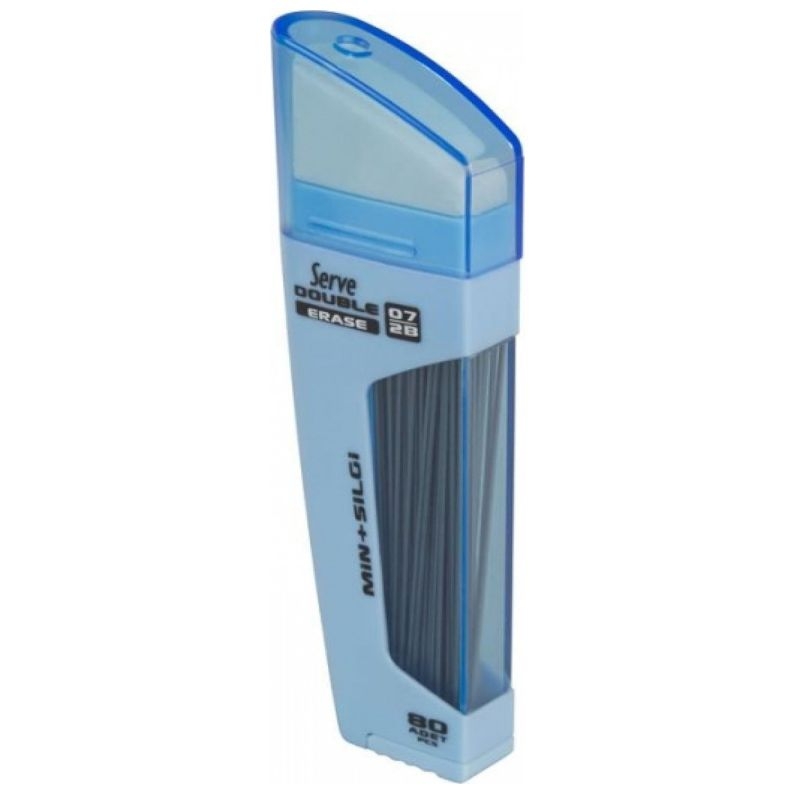 Σβήστρα Double Erase της εταιρίας Serve, η οποία έχει αποθηκευτικό χώρο για μύτες μηχανικού μολυβιού. Περιλαμβάνει 80 μύτες, συμβατές με μολύβια όλων των εταιριών με το συγκεκριμένο πάχος γραφής.