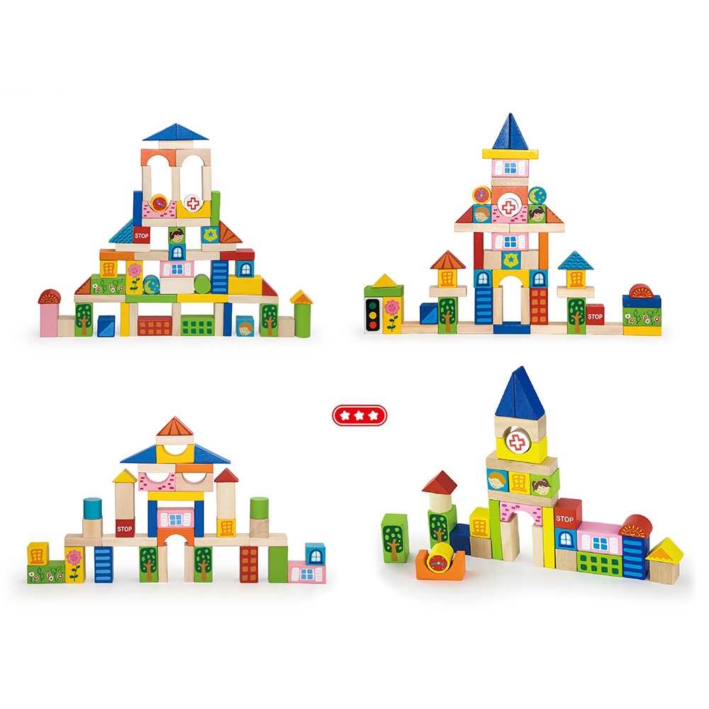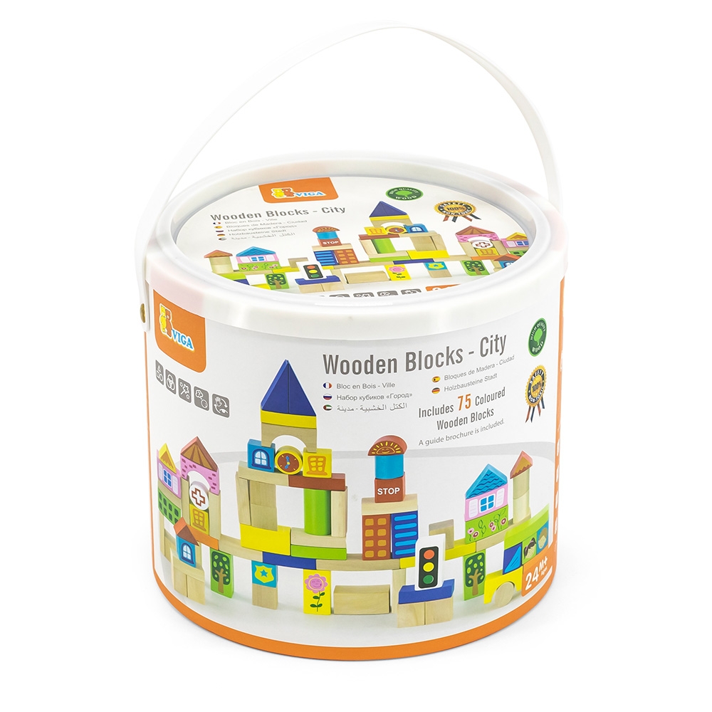 Ξύλινα τουβλάκια σε πλαστικό κουτί - Πόλη (75κ.) - Viga