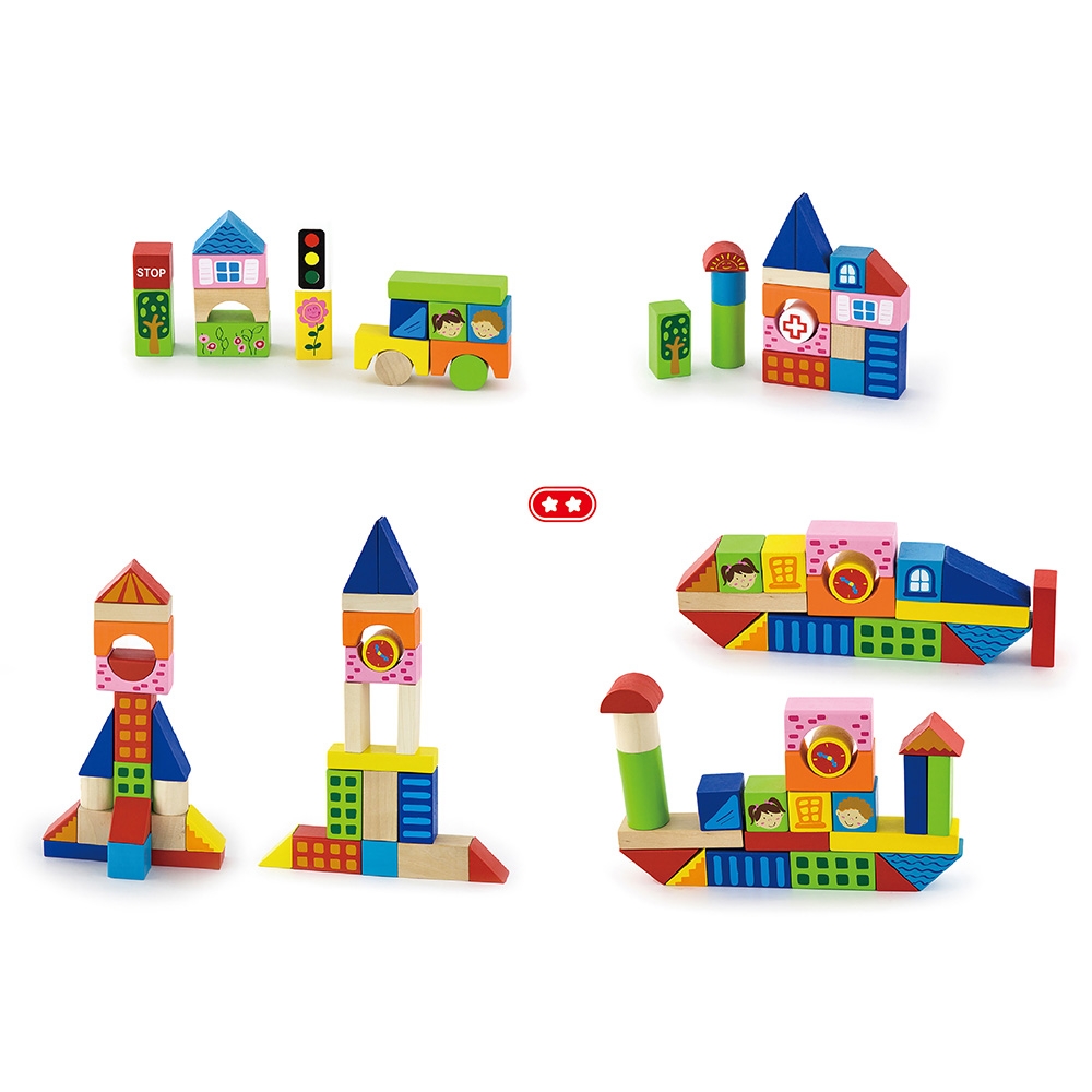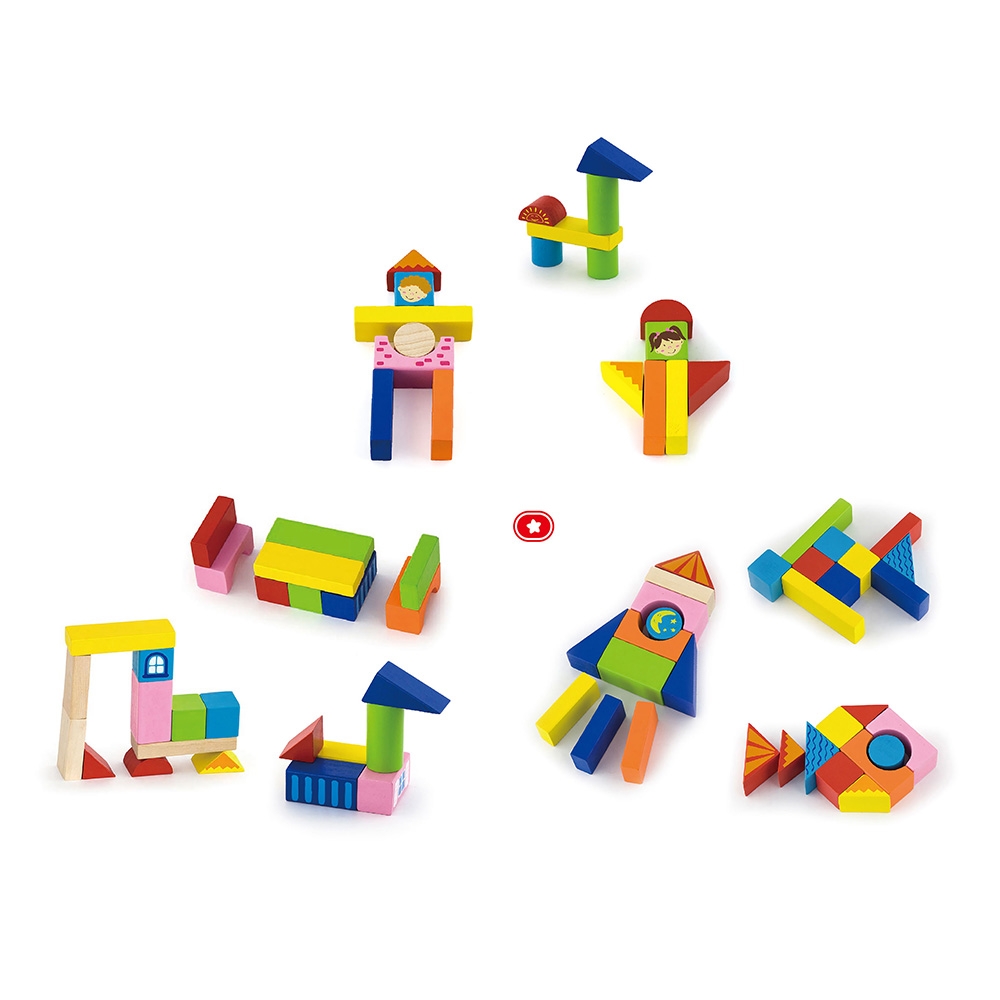 Περιλαμβάνει: 75 χρωματιστά ξύλινα τουβλάκια σε διάφορα μεγέθη και σχήματα κι ένα βιβλιαράκι με ιδέες για να σας βοηθήσει να ξεκινήσετε.